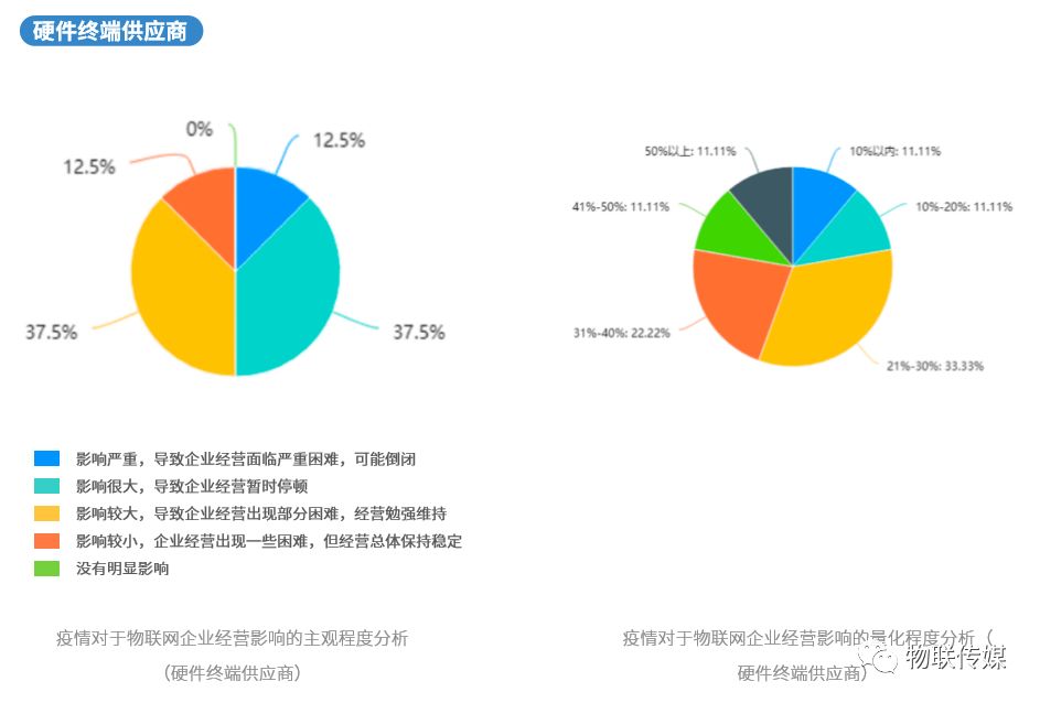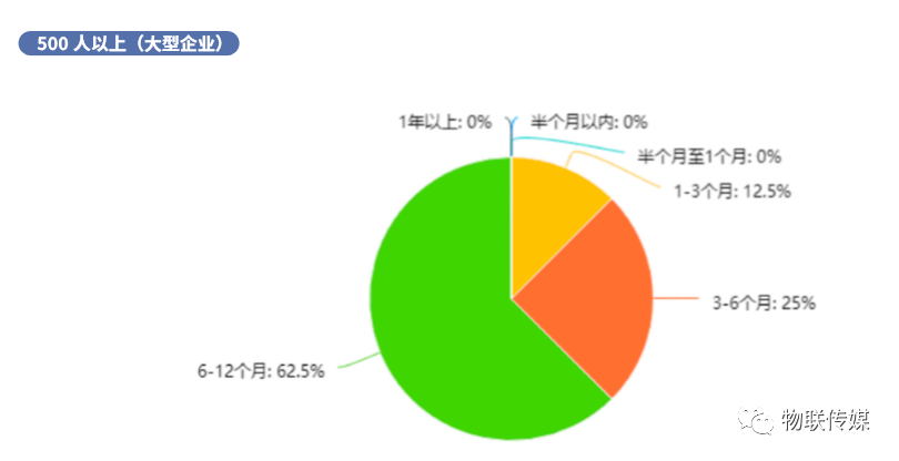 4.硬件终端供应商选择影响较小的比例仅为12.5%,而选择影响很大与影响严重的企业占比却达到了50%,这一数据远高于全国平均水平的38.18%。这表明了疫情对于物联网的硬件终端供应商影响非常的大。