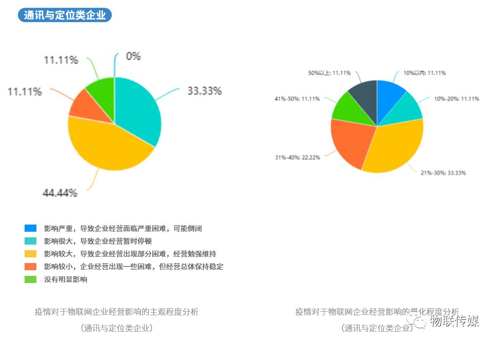 1.在针对疫情对于企业的影响程度的调研中,综合全国各地的数据来看,本次疫情对于物联网企业的影响是非常大的,超过73%的企业认为疫情对于企业经营影响较大或者以上,而仅有不到27%的企业认为疫情对公司的影响较小。