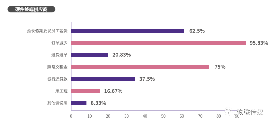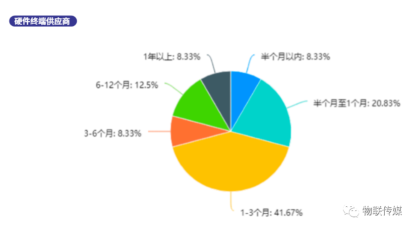 4.硬件终端供应商企业资金的支撑时间在3个月以内的占比达到了70.83%,由此可见,这类企业受疫情影响面临的资金压力是很大的。