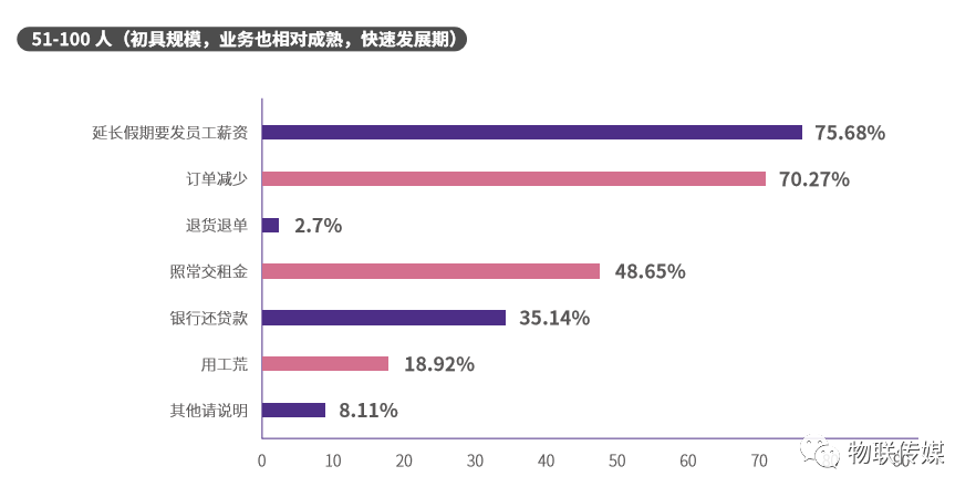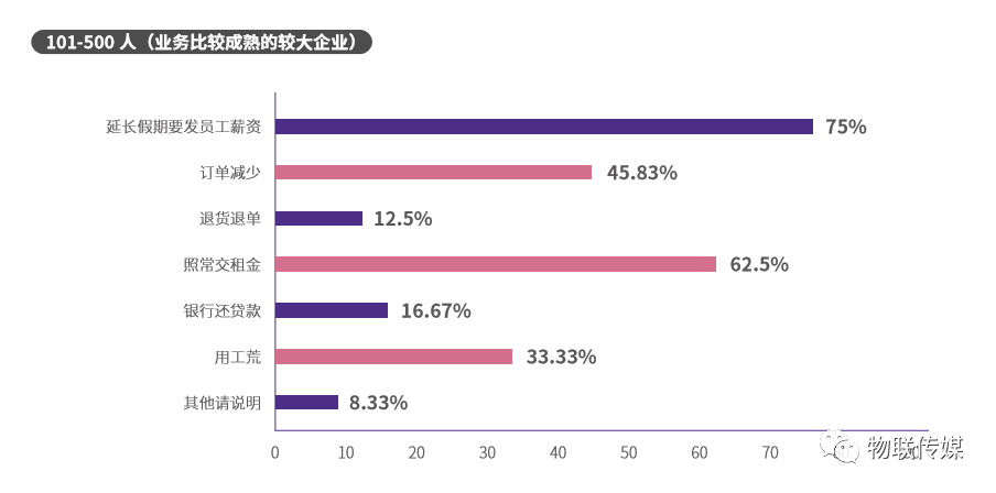通过分析不同规模的物联网企业对于疫情对公司造成主要因素的分析,我们可以总结出以下的规律: