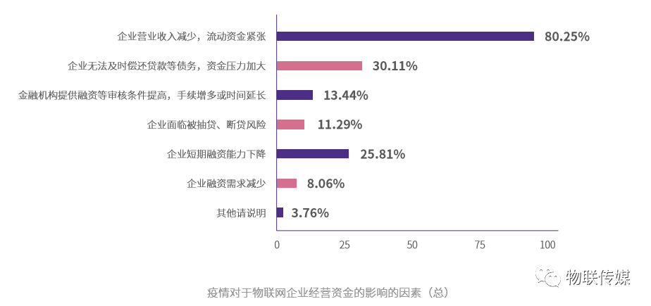 资金与现金流是保持企业正常运营最重要的因素,在本次调研中,我们针对疫情对于物联网企业经营资金的影响具体表现在哪些方面进行了调研,在这项问题中,疫情对企业经营资金的影响因素主要体现在下面几个方面:企业营业收入减少、流动资金紧张、企业无法及时偿还贷款等债务、资金压力加大、金融机构提供融资的审核条件提高、手续增多或时间延长、企业面临被抽贷、断贷风险、企业短期融资能力下降、企业融资需求减少。