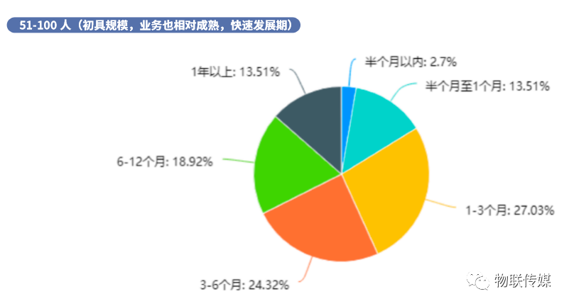 1.50人规模以下的企业与平均水平的表现比较契合,这与我们本次调研的样本以中小企业为主有关,也一定程度说明了当前物联网企业的规模整体水平比较小。
