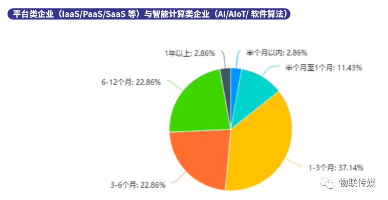3.平台与智能计算类企业的资金支撑时间在6个月以上的比例为25.72%,高出全产业链平均水平的18.82%不少,并且3个月以下的企业占比也比全产业链平均水平少,这类企业整体的抵抗风险能力比较强。