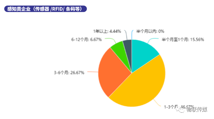 1.感知类企业资金支撑在6个月以上的比例偏小,仅有11.11%。而在3个月以下的为62.23%,整体来说,这类企业资金压力比较大。